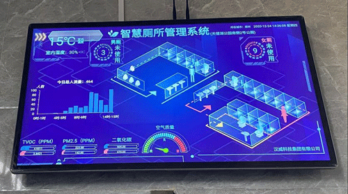 智慧公廁利用現(xiàn)代智能控制、傳感傳導(dǎo)等技術(shù),將廁所布局、廁位使用情況、天氣、時間、溫度、濕度、空氣質(zhì)量等實時數(shù)據(jù)集中顯示在入口的顯示屏上,為每一個市民提供廁所使用信息和常規(guī)便民信息。